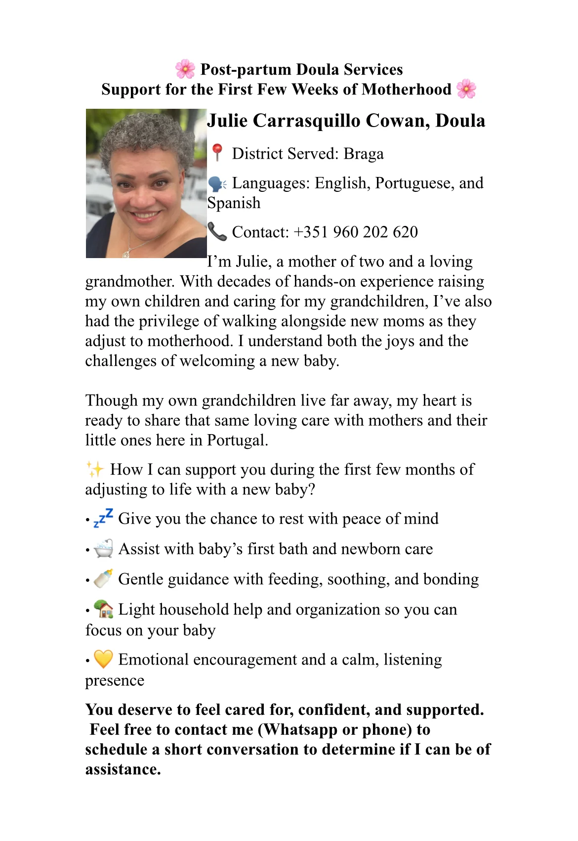 Support for the first few months of motherhood. You don’t have to struggle through this new phase alone. See flyer below.
